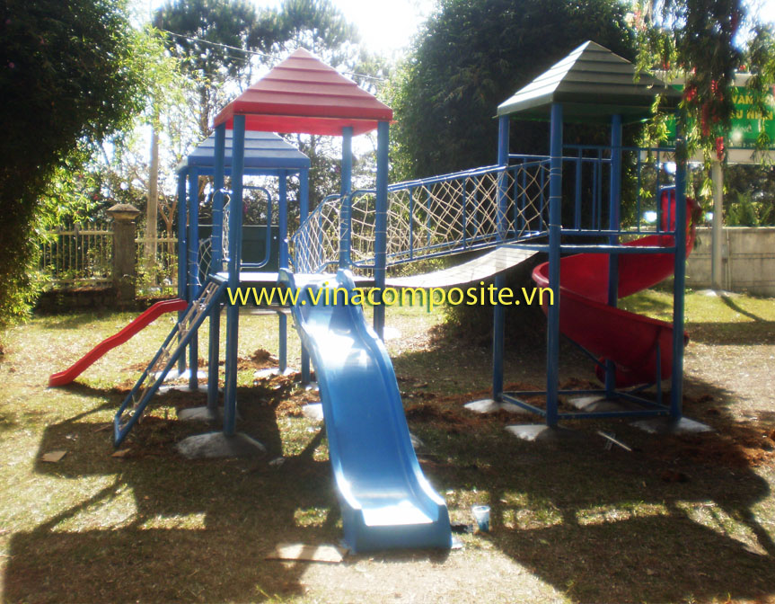 Đồ chơi công viên, Sản phẩm cầu trượt nhà chòi có mái che cho bé, bộ vận động liên hoàn cầu trượt ngoài trời làm bằng sắt tráng kẽm sơn tĩnh điện hiện đại chống gỉ cùng với nhựa Composite chắc chắn, chúng tôi tuyệt đối không dùng bất kì nguyên liệu nào có chứa chì làm hại sức khỏe của bé . Cầu trượt nhà chòi đồ chơi công viên sản phẩm thiết kế riêng cho bé từ 5 đến 12 tuổi phù hợp lắp tại trường mầm non, sân chơi ngoài trời, và các khu vui chơi trẻ em khác hoặc lắp tại nhà cho các bé khi có sân chơi riêng. Chơi cầu trượt ngoài trời, đồ chơi công viên ngoài trời giúp bé phát triển cả trí tuệ và thể chất, kích thích quá trình trao đổi chất trong cơ thể bé, đồng thời đây cũng là bộ đồ chơi an toàn lành mạnh cho bé. Công ty chúng tôi sản xuất đồ chơi công viên theo thiết kế chuẩn hoặc quý khách cũng có thể yêu cầu thay đổi để phù hợp với không gian mà bạn đặt sản phẩm.